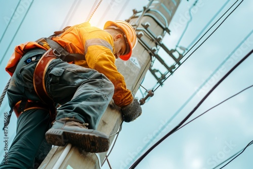 Electrician Working on a Power Pole