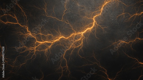 Electrifying orange lightning bolt against a black background, powerful display of energy and light