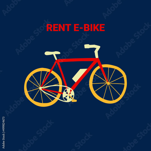 Electrobike against a dark background. Rent an e-bike. Handdrawn illustration in vector.