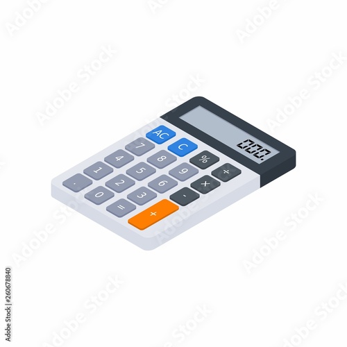 Electronic calculator, Isometric, Concept calculate account finance, Office equipment, Finance, Business, No background, Vector, Flat icon