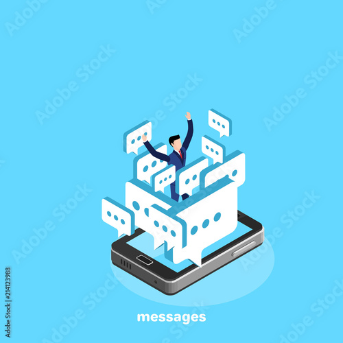 electronic messages and letters on the smartphone, isometric image