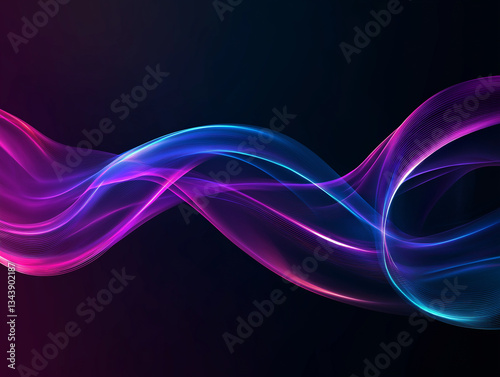 Elegant abstract design with glowing purple and blue wavy line on dark background