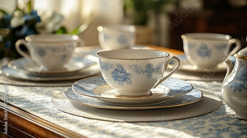 Elegant afternoon tea set arranged on a wooden table cozy home environment natural light classic style