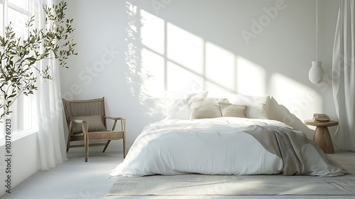 Elegant and Cozy Modern Bedroom Interior Design with Stylish Decor, mockup, poster and Background