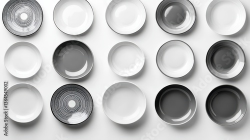 Elegant Arrangement of Round Plates in Black and White Shades