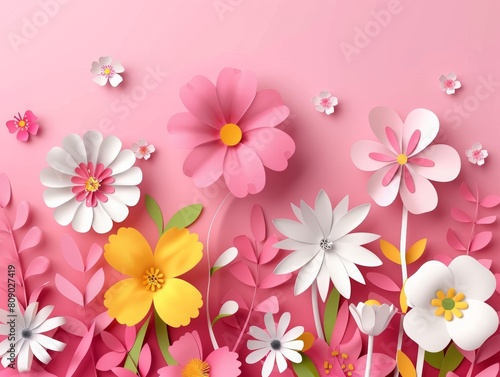 Elegant background for Mother's Day with paper cut flowers. Presentation design template, commercial banner, web banner and poster template for international Mother’s Day celebration.