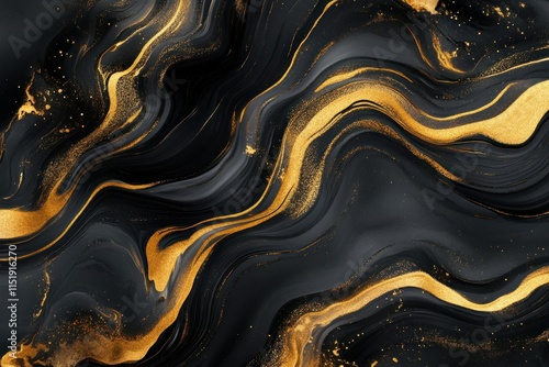 Elegant Black and Gold Abstract Background with Fluid Swirls Ideal for Luxury Designs, Textures, and Artistic Projects in Modern Aesthetics