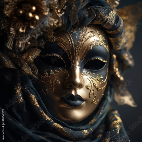 Elegant Black and Gold Fabric with Ornate Decorations