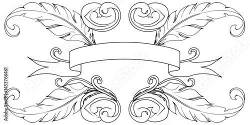 Elegant Black and White Feather and Scroll Banner Design
