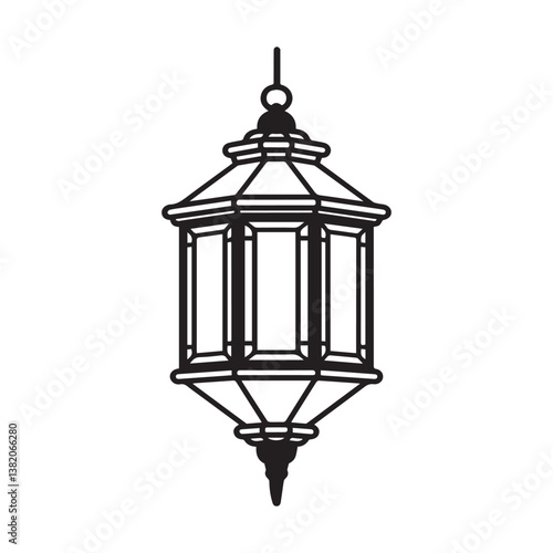 Elegant Black and White Islamic Lantern Silhouette Design.