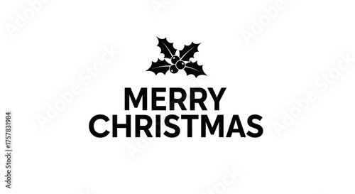 Elegant black and white "Merry Christmas" text with a holly leaf symbol on a clean background for festive greetings.