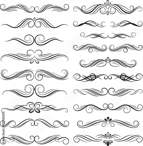Elegant Black and White Ornate Swirls and Floral Vector Border Set