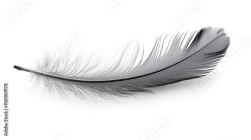 Elegant Black Feather on White Background for Nature and Art