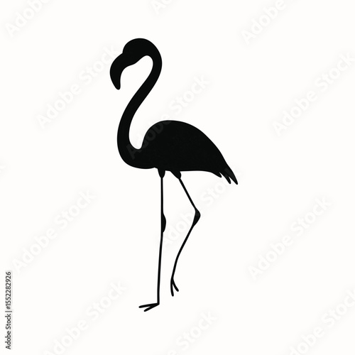 Elegant Black Flamingo Silhouette Illustration on White Background - Minimalist Vector Art for Tropical Design