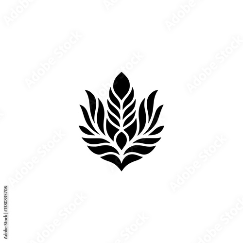 Elegant Black Floral Logo on White Background, Minimalist Design