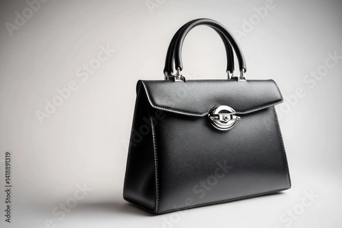 Elegant black leather handbag with a structured design and silver clasp.
