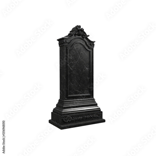 Elegant Black Marble Headstone, Blank Memorial Tombstone, Ornate Grave Marker