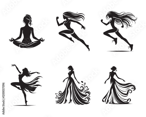 Elegant Black Silhouette Design of Feminine Figures on Transparent Background (Vector Editable)