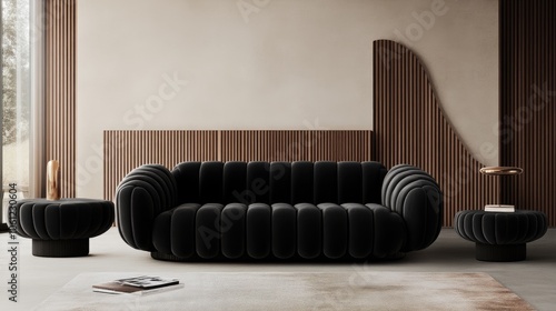 Elegant Black Sofa in Modern Minimalist Interior