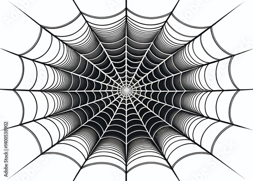 Elegant Black Spiderweb Line Art on White Background - Stock Photo