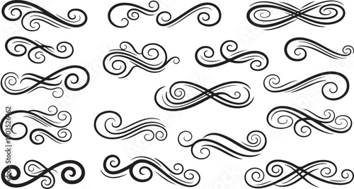 Elegant black swirling line patterns on white background design