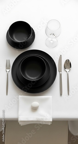 Elegant Black Table Setting - Minimalist Dining Experience.