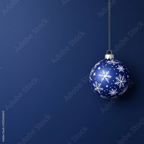 Elegant blue christmas ornament with white snowflake patterns on a dark blue background