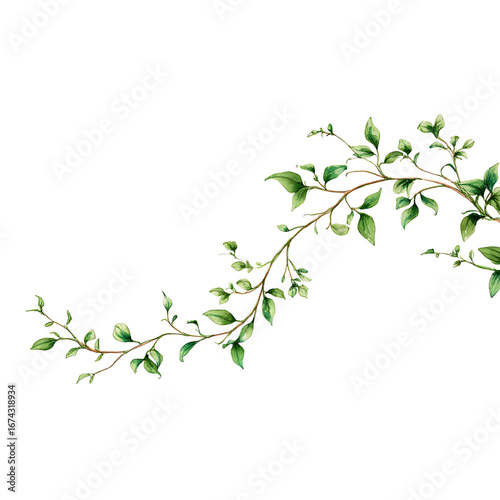 Elegant botanical illustration of vibrant green leaves and delicate branches, perfect for design projects and enhancing visual appeal