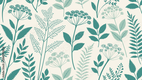 Elegant botanical pattern with green plants and flowers