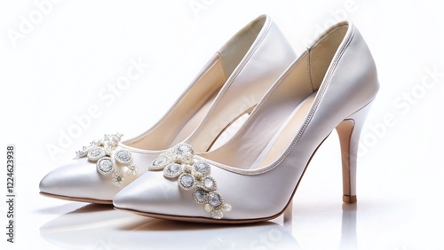 Elegant Bridal Wedding High Heels Shoes for Bride, White Satin Stilettos, Classic Bridal Footwear
