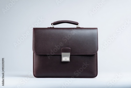 Elegant brown leather briefcase on plain background