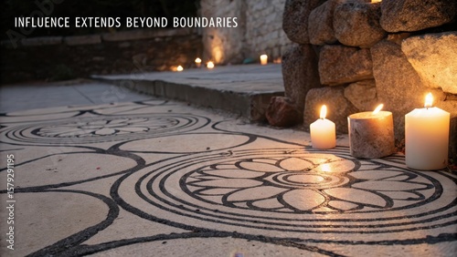 Elegant Candlelit Pathway with Intricate Stone Design and Glow