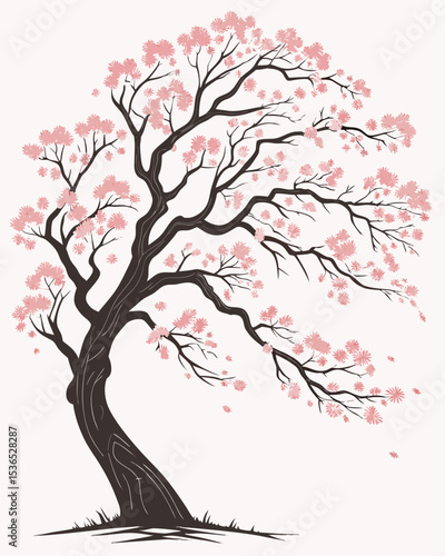 Elegant Cherry Blossom Tree A Delicate Watercolor Illustration of Nature's Beauty