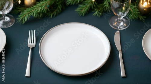 Elegant Close-Up of Beautifully Set Table with Silver Cutlery and Festive Decorations