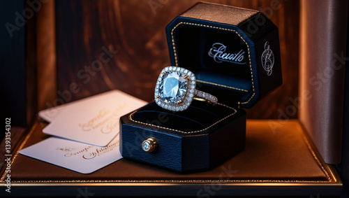 Elegant Diamond Engagement Ring In Black Gift Box With Invitation Cards