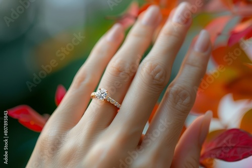 Elegant Diamond Engagement Ring on Hand, Close-Up of Luxurious Wedding Jewelry