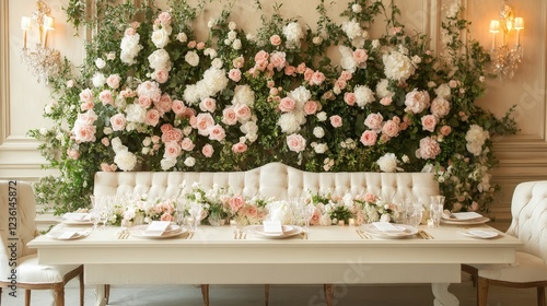 Elegant Extravagant Floral Wall Arrangement Featuring Roses, Peonies, and Orchids for Luxurious Event Decor and Wedding Settings