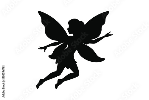 Elegant Fairy Flying with Wings in Black Silhouette Style on White Background a Magical and Enchanting Design Element for Fantasy Projects silhouette