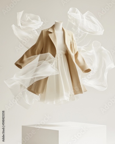 Elegant fashion display studio setting still life minimalist aesthetic dramatic visuals quiet luxury concept