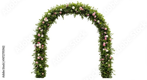 Elegant Floral Archway Adorned with Blooming Roses and Verdant Greenery