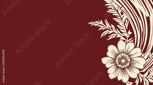 Elegant Floral Design Burgundy Background with Cream Flower and Leaves