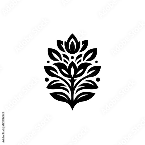 Elegant Floral Emblem: Black & White Botanical Design for Branding