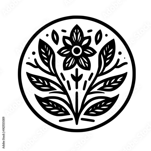Elegant Floral Emblem: Black & White Botanical Illustration for Design