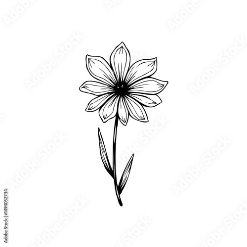 Elegant Floral Sketch: A Delicate Daisy Blossom in Minimalist Black and White