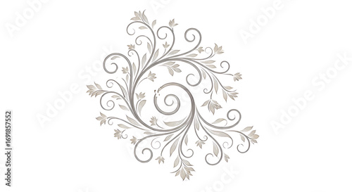 Elegant floral swirl with leaves and blossoms isolated PNG with Transparent Background
