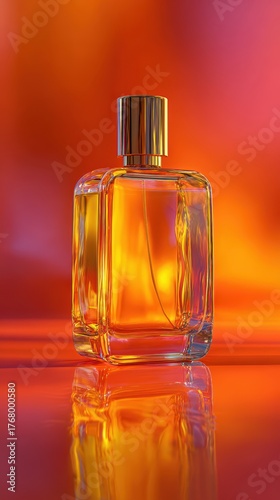 Elegant Glass Perfume Bottle with Colorful Background and Reflection