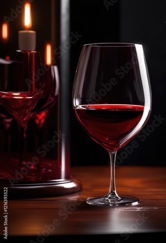 elegant glass red wine showcasing rich hue surrounding bottle silhouette reflections details, luxury, drink, alcohol, beverage, composition, shiny, dark