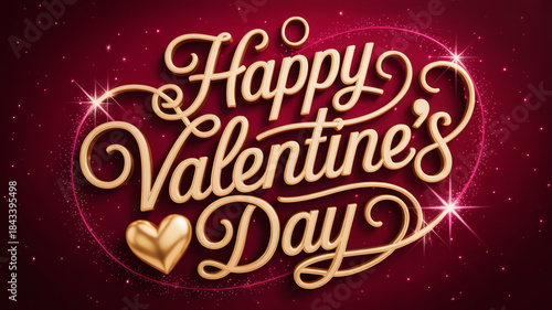 Elegant gold happy valentine's day greeting on a vibrant red glitter background