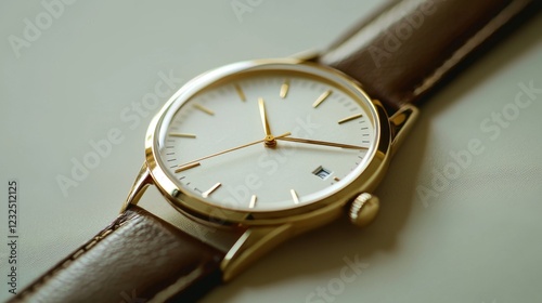 Elegant Gold Watch with Brown Leather Strap on Light Background