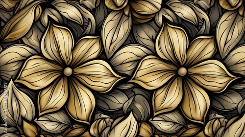 Elegant golden floral pattern with leaves for stock image use.